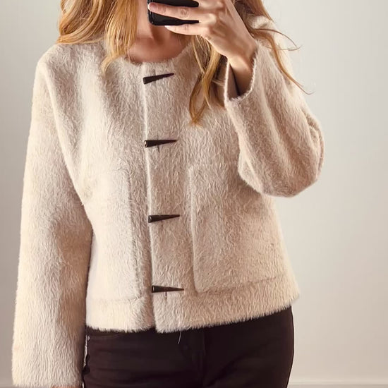 Fluffy Toggle Cardigan in Beige